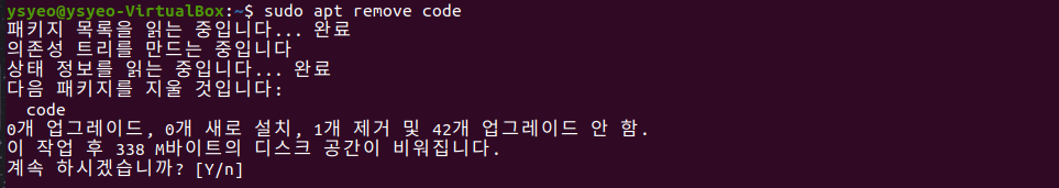 설치한 VS Code를 삭제하려면 아래 리눅스 명령어를 터미널에 입력해주세요.